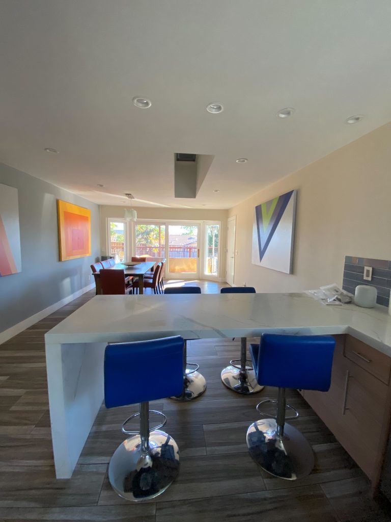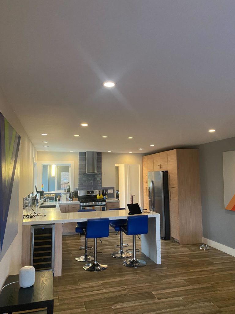 This project refreshed the entire main living space with an open-concept layout, upgraded kitchen features, improved natural and recessed lighting, updated flooring, and a clean, contemporary interior design